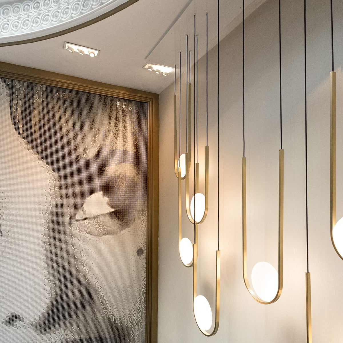 We helped Studio RB to add a dramatic moment to the beautiful Le Basque restaurant in NYC with an array of our Apogee Pendants.