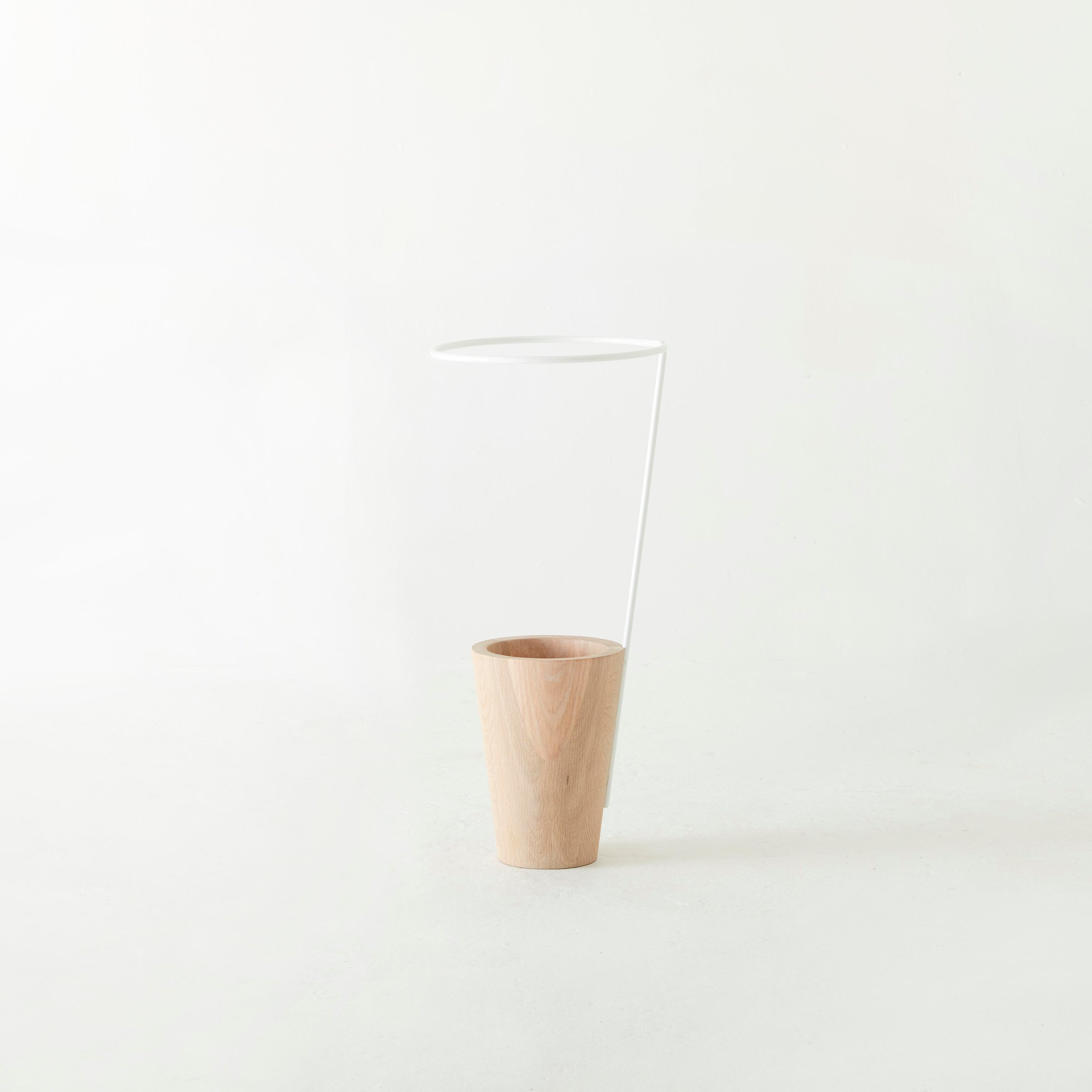Fiddlehead Umbrella Stand (w.oak | white + white powder coat)