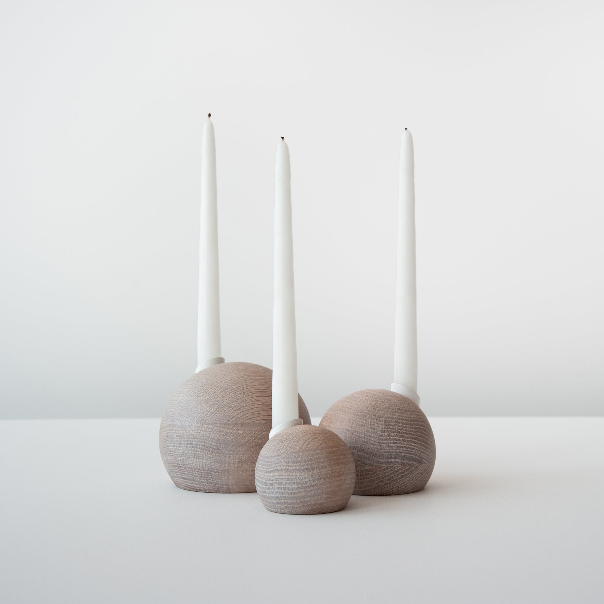 Pebble Candle Holder (w.oak | white + white powder coat)